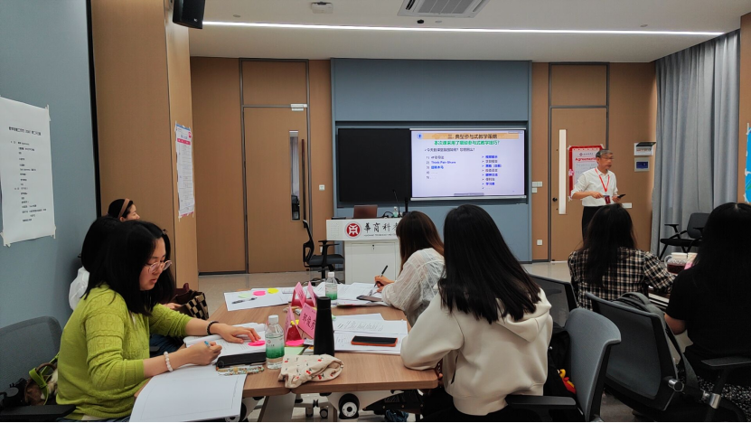 此外,本次ISW课程还涵盖了互动教学技巧、mini lesson教学实践以及即时反馈与评估等内容。通过课前热身提问、小组合作等方式,教授们调动了参训教师的积极性;参训教师通过多次教学演练并接受同伴及导师反馈,快速改进教学行为。