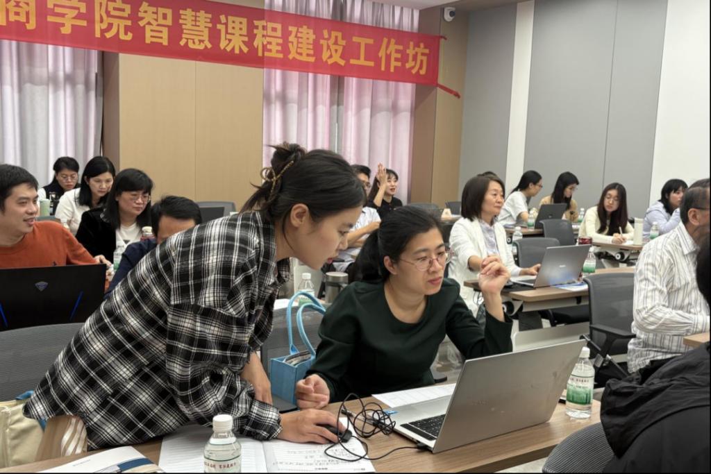 为深入推进教育数字化转型,全面提升教师智慧课程设计与实施能力,构建高质量课堂教学体系,10月28日至29日,我校联合暨南大学产业经济研究院在广州校区弘美楼举办的“广州华商学院智慧课程建设工作坊”培训班,各二级学院约40名专任教师齐聚一堂,通过专题讲座、案例研讨和实操工作坊等形式,沉浸式探索智慧教育与学科教学融合的新路径。