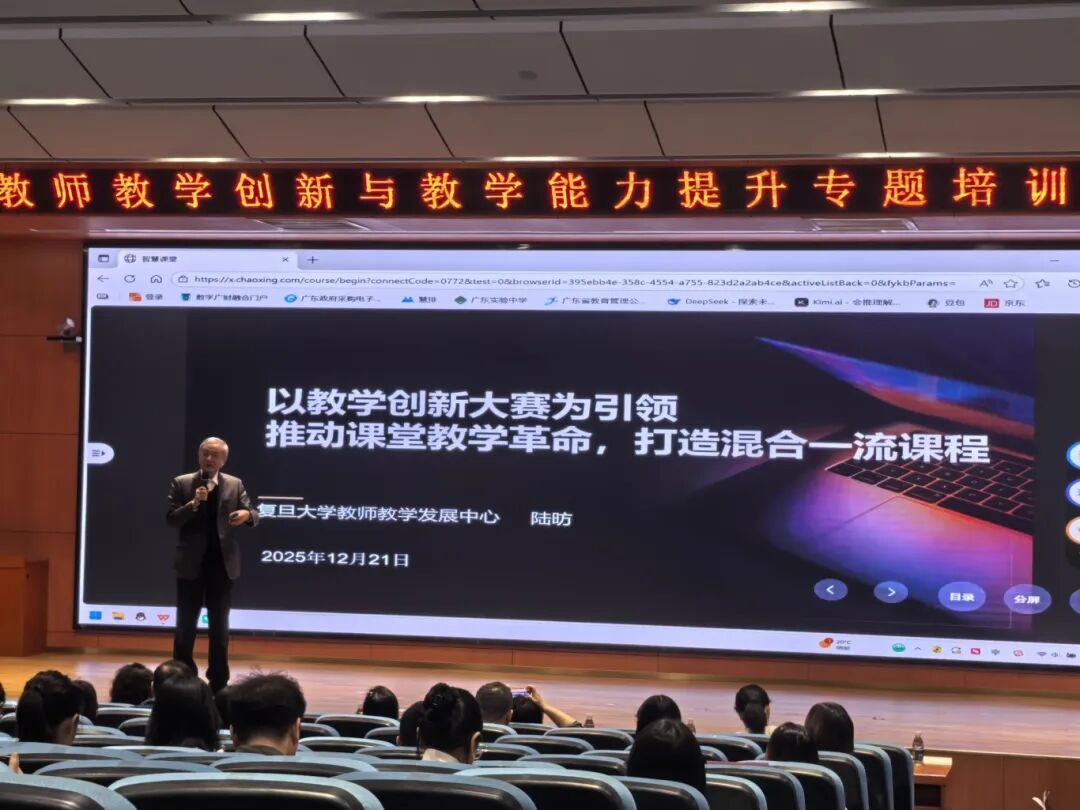 此次培训的专家团队汇聚了全国高校教学领域的顶尖学者与实战名师,分享内容兼具理论与实践干货满满。其中,山东财经大学毕继东教授以“多元融合,知行合一--教学创新设计与实践”为题展开分享;浙江大学医学院附属第一医院苏俊威教授聚焦“思政融通赋能全程育人--学科视域下的课程思政创新与实践”,深入剖析课程思政与学科教学的融合路径;华南理工大学陆芳教授依托数万门课程评审的实战经验,以“数智时代的教学创新新内涵--全国高校教师教学创新大赛人工智能赛道视角”为切入点,解析教学创新与人工智能教育应用的核心逻辑,为智慧课程建设提供了全新思路;重庆大学何静媛副教授围绕“教学何以创新”主题,系统分享相关实践经验;山西医科大学周雪教授作为全国教学创新大赛一等奖获得者,以“教学创新设计的抓手、实践与反思--以老年护理学课程为例”为题,毫无保留地分享了从课堂实践到赛事备赛的宝贵心得;复旦大学陆防教授凭借深厚的教学管理积淀,以“数智时代的教学创新新内涵--全国高校教师教学创新大赛人工智能赛道视角”作分享,带来高屋建瓴的理论引领与行业前沿洞察;空军工程大学屈虹教授围绕“以教学创新大赛为引领,推动课堂教学革命,打造混合一流课程”,从课程思政融入、跨学科教学创新等角度,呈现了极具创新性与操作性的教学方案。