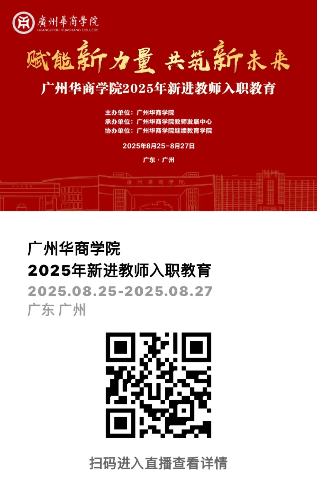 1.请各单位高度重视新进教师入职教育培训,各位新教职工参加8月25、27日两天的集中培训活动统一穿上学校下发的粉色服装出席,26日的培训统一上白下黑的服装出席;全体教职工均在广州校区参训,由于参会人员较多,请8点30分到达会场签到,并按指定位置就座。(座位安排详见附件)